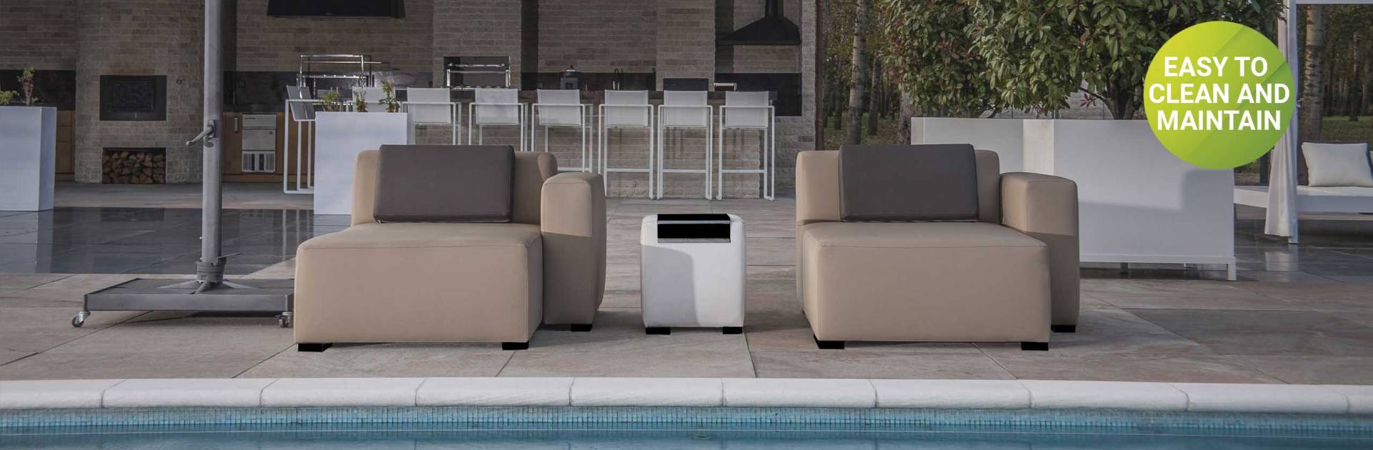 Tuinmeubilair met het design en comfort van een binnen-bank, maar dan met een dusdanige kwaliteit dat deze meubels het gehele jaar door buiten kunnen staan in weer en wind.