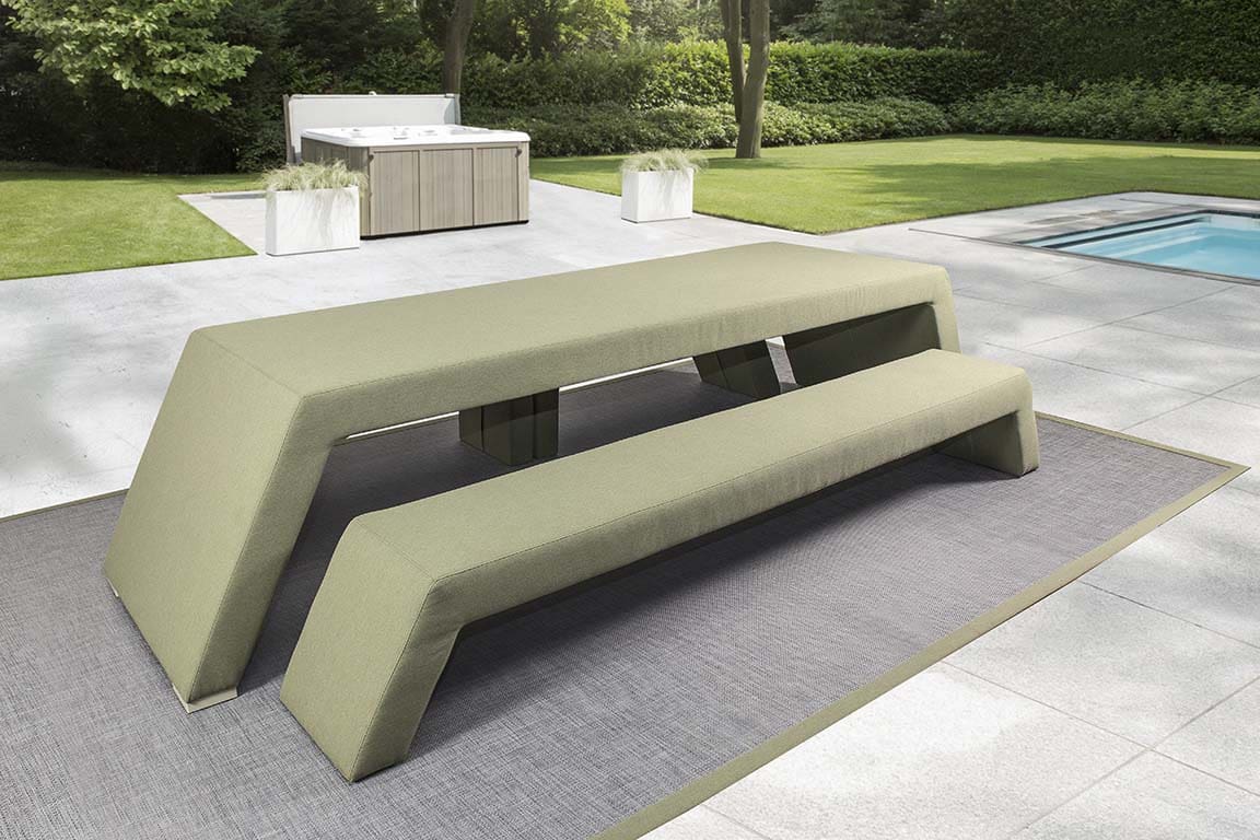The Bench brengt het buitenleven naar een hoger niveau met zijn unieke mix van design, comfort en functionaliteit. Deze luxe gestoffeerde picknickbank is speciaal ontworpen voor langdurig zitcomfort, zodat u ongestoord kunt genieten van heerlijke diners, gezellige borrelmomenten of ontspannen koffiepauzes in de tuin of op het terras.