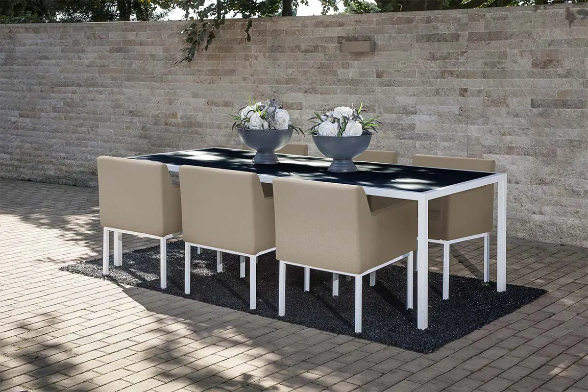 Onze stoelen en tafelframes worden vervaardigd van de allerbeste kwaliteit aluminium en zijn verkrijgbaar in 3 RAL kleuren (zwart, wit en grijs).