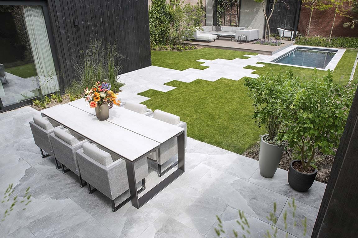 Een ander sterk punt van de Colombo collectie is de mogelijkheid tot persoonlijke aanpassing. De meubelpoten en tafelframes kunnen worden uitgevoerd in maar liefst 5 verschillende RAL-kleuren, waardoor je het meubel perfect kunt laten aansluiten op jouw buitenomgeving. Daarnaast zijn de Colombo tafels verkrijgbaar met een blad in 5 unieke soorten keramiek, elk met hun eigen uitstraling en karakter. Zo creëer je een buitenruimte die echt bij jou past – tot in elk detail.