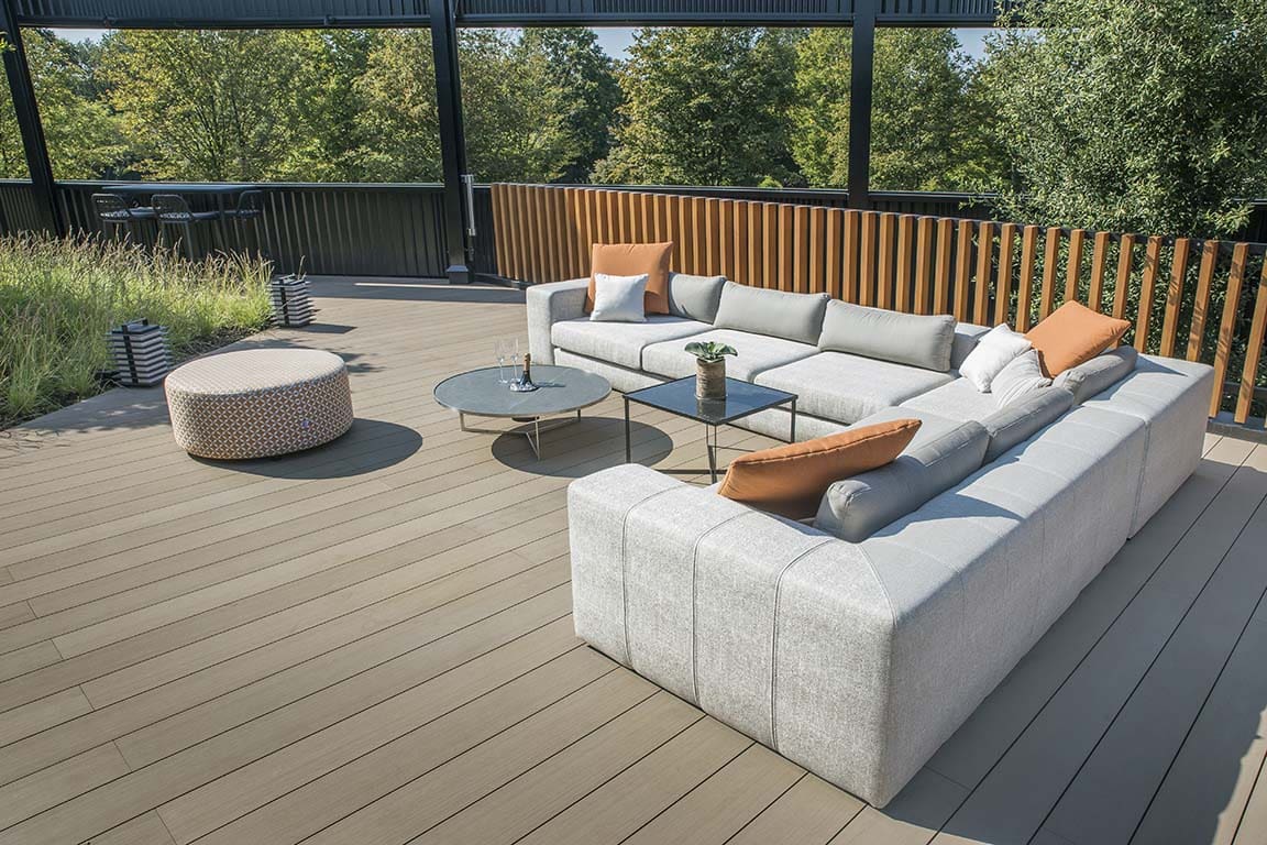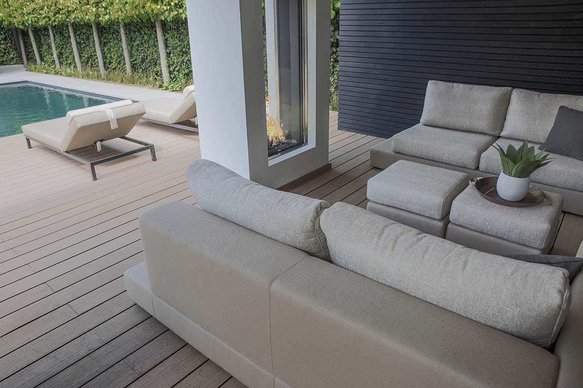 De bank is beschikbaar in diverse opstellingen en afmetingen, zodat je deze volledig kunt aanpassen aan jouw buitenruimte. Wil je meer ontspanning en flexibiliteit? Breid de set uit met een chaise longue en geniet van extra zitruimte of een comfortabele plek om te relaxen in de zon.